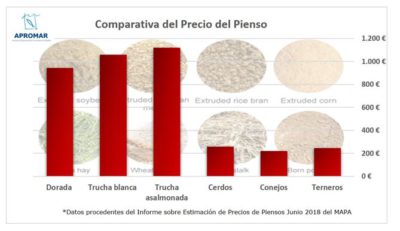 Esta organización, en base al Informe de Estimación de Precios de Piensos de junio de 2018 publicado por el Ministerio de Agricultura, Pesca y Alimentación (MAPA), afirma que «el pienso de acuicultura es, con diferencia, el más caro respecto del resto de animales, tanto para peces de agua dulce como salada».
