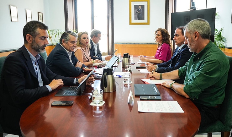 El consejero de la Presidencia, Interior, Diálogo Social y Simplificación Administrativa, Antonio Sanz; la consejera de Economía, Hacienda y Fondos Europeos, Carolina España; el consejero de Agricultura, Pesca, Agua y Desarrollo Rural, Ramón Fernández-Pacheco, y el consejero de Industria, Energía y Minas, Jorge Paradela, han mantenido una reunión en San Telmo con el presidente de