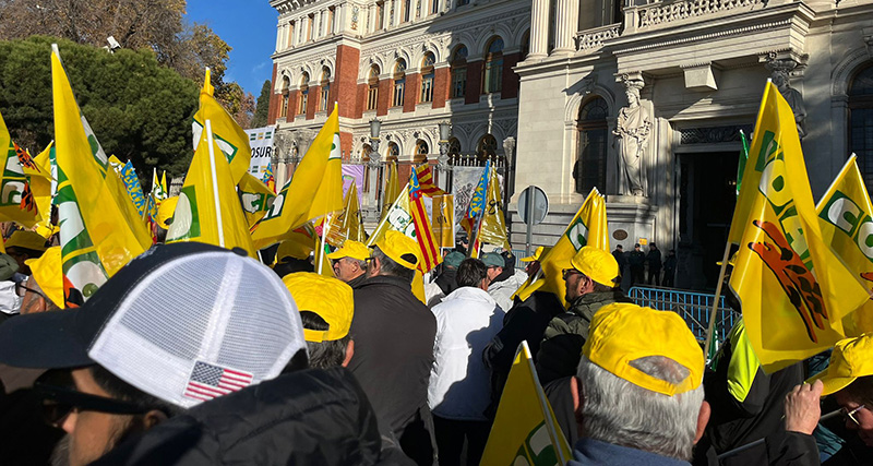 Las organizaciones agrarias Asaja y COAG, junto a Cooperativas Agro-alimentarias, han logrado reunir a unas 5.000 personas, según la organización, frente al Ministerio de Agricultura, Pesca y Alimentación (MAPA) para rechazar los tratados de libre comercio, que creen les perjudican gravemente. Afirman que «todo» el sector agrario «se encuentra amenazado» por la proliferación de tratados