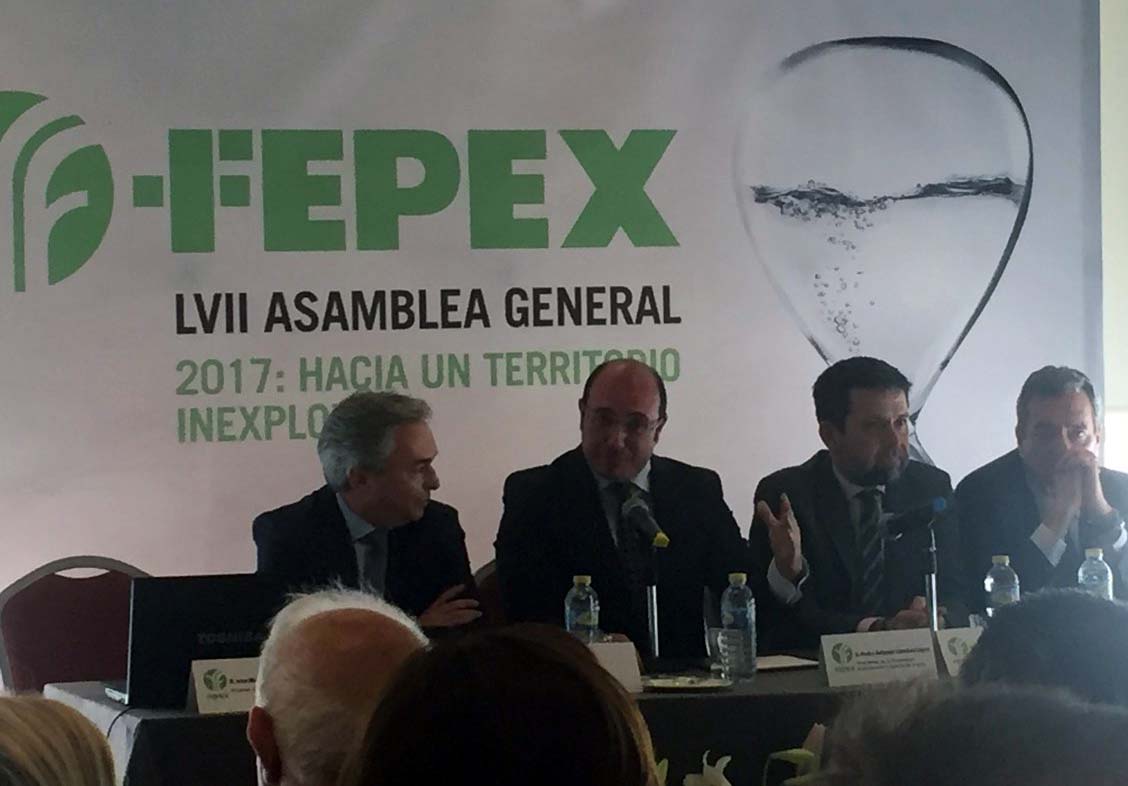 El presidente de la Junta de Extremadura, Guillermo Fernández Vara, clausuró la Asamblea de la Federación Española de Asociaciones de Productores Exportadores de Frutas, Hortalizas, Flores y Plantas vivas, Fepex, el viernes, en Villanueva de la Serena, en la que defendió un pacto nacional en cuestiones clave como el agua, la energía o las infraestructuras