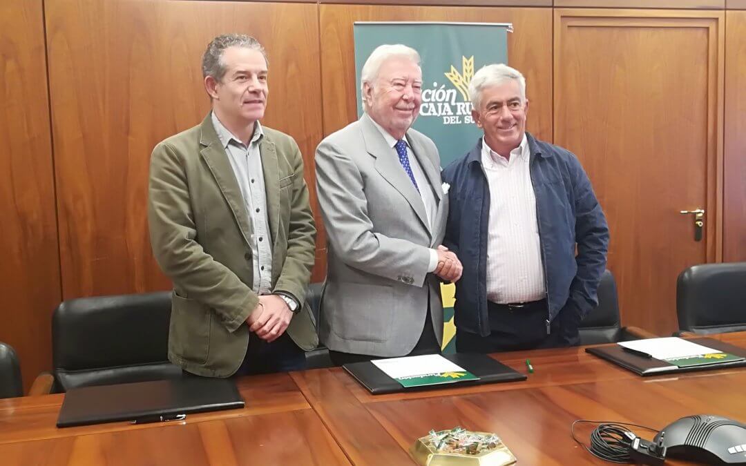 Los presidentes de la Fundación Caja Rural del Sur, José Luis García Palacios, y de la Asociación de Productores y Exportadores de Fresas de Huelva (Freshuelva), Alberto Garrocho, han renovado su convenio de colaboración con el fin de seguir colaborando en llevar a cabo acciones de promoción, formación, información o investigación. Ambos estuvieron acompañados por