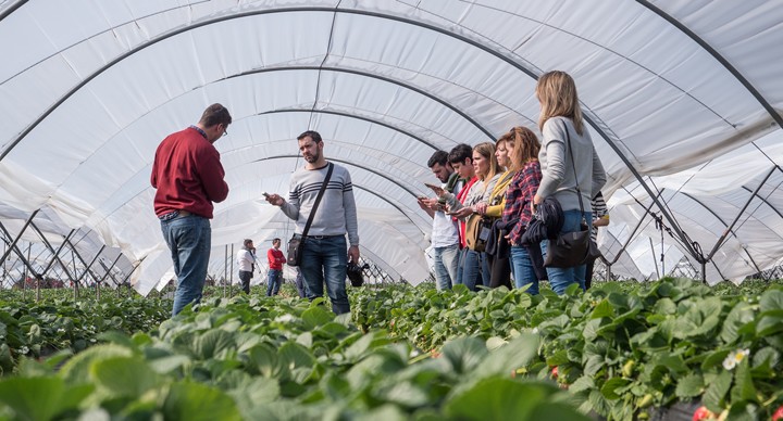 Un grupo de periodistas y blogueros españoles visita Huelva para conocer el sistema productivo de las fresas