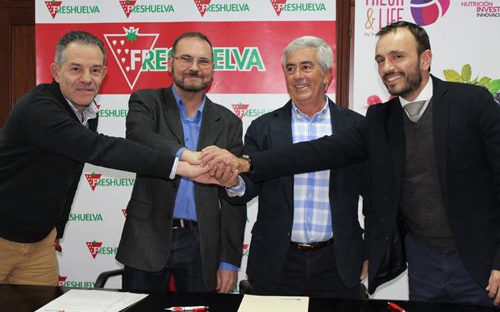 Freshuelva ha firmado un convenio de colaboración con el presidente de la Unión de Consumidores de Andalucía (UCA-UCE), Juan Moreno Rodríguez, y con el representante del proyecto Naturcode que impulsa, a su vez, la asociación de consumidores, Fernando Vázquez, para darle difusión a esta plataforma que permite a los productores etiquetar sus productos con códigos