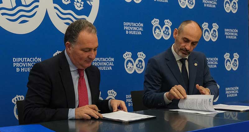 La Diputación de Huelva y la Universidad de Huelva han firmado esta mañana un convenio de colaboración destinado a impulsar actividades de investigación y ensayos demostrativos frente a la seca de la encina, una de las principales amenazas del ecosistema adehesado de la provincia. La rúbrica, celebrada en el Salón de Plenos de la institución