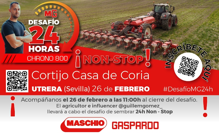 Maschio Gaspardo Ibérica presenta el primer ‘Desafío de 24 horas de siembra Non-Stop’, que tendrá lugar del 25 al 26 de febrero de 2025 en Utrera (Sevilla). Se trata de un desafío nunca antes realizado, y que pretende poner en valor el desarrollo y las tecnologías del sector agrario, ofreciendo a los agricultores los medios