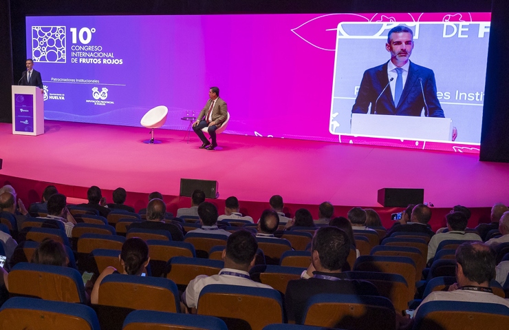 El consejero de Agricultura, Pesca, Agua y Desarrollo Rural, Ramón Fernández-Pacheco, ha sido el encargado de clausurar el X Congreso Internacional de Frutos Rojos de Huelva que durante dos días se ha veniido celebrando en la Casa Colón de la capital. En su intervención, ha anunciado en Huelva que la Junta de Andalucía está en
