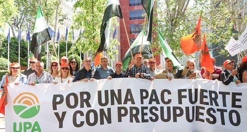 Varios centenares de agricultores y ganaderos de toda España se han concentrado hoy en Madrid, convocados por la organización agraria UPA, bajo el lema “Por una PAC fuerte y con presupuesto”. La protesta ha formado parte de una serie de concentraciones que han tenido lugar hoy en toda Europa convocadas por el COPA-Cogeca –el organismo