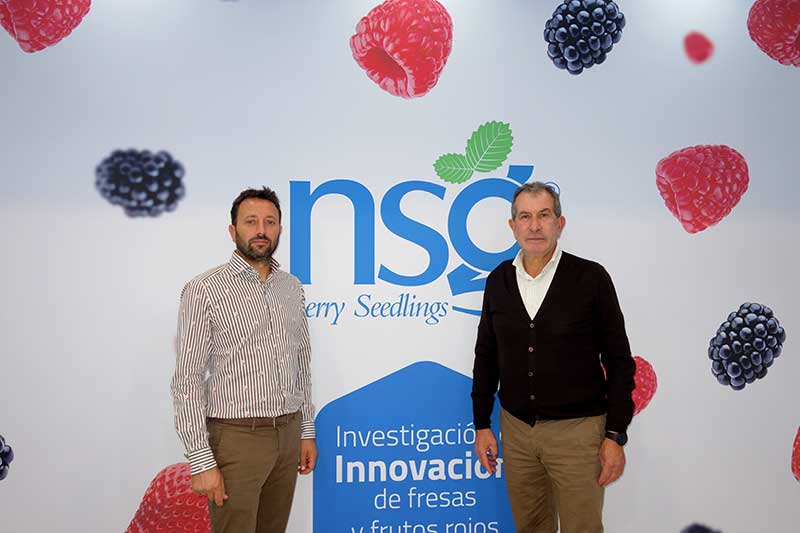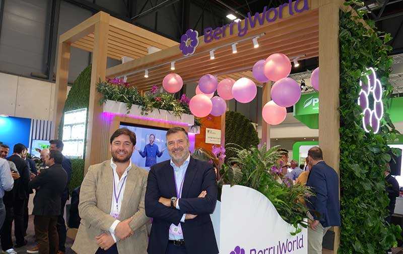 Flanqueando la imagen de la frambuesa Alegría, de Viveros California, Félix Castaño y la presidenta del Grupo Medina, Rocío Medina.