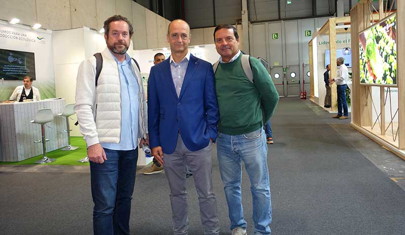 En el centro, el presidente de COITAND en Huelva, Julio Volante, con Juan Carlos García y un colegiado de Agrónomos.