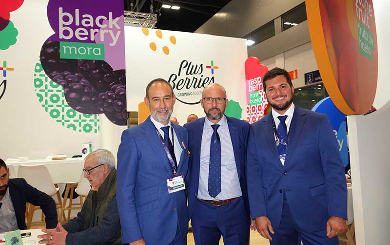 El responsable del Grupo Plus Berries, Daniel Velo, Javier Velo, responsable de La Canastita, y el responsable de márketing, Jesús Díaz.