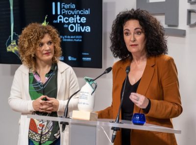 La presidenta de la Diputación de Huelva, María Eugenia Limón, y la alcaldesa de Gibraleón y vicepresidenta provincial, Lourdes Martín, han presentado el programa de la 2ª edición de la Feria Provincial del Aceite de Oliva de Huelva, que se celebrará este año en Gibraleón los días 14 y 15 de abril, en una nave situada al lado del auditorio municipal, tras el éxito alcanzado en su primera edición el año pasado en Beas, coincidiendo con su feria del aceite.