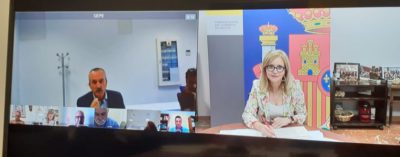 La reunión telemática de la Comisión del PFEA en Huelva, que preside Manuela Parralo.