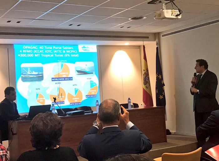 La flota atunera española, agrupada en la Organización de Productores Asociados de Grandes Atuneros Congeladores (OPAGAC), ha presentado en la sede de la Representación Permanente de España ante la Unión Europea (REPER) en Bruselas los sistemas tecnológicos que emplean sus buques y su contribución decisiva a la transparencia y la sostenibilidad de la pesquería de