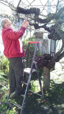 Miguel Lara en Valverde podando la parra.